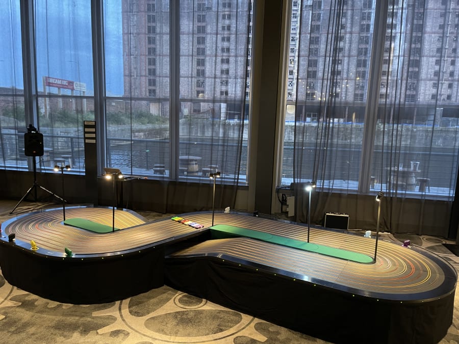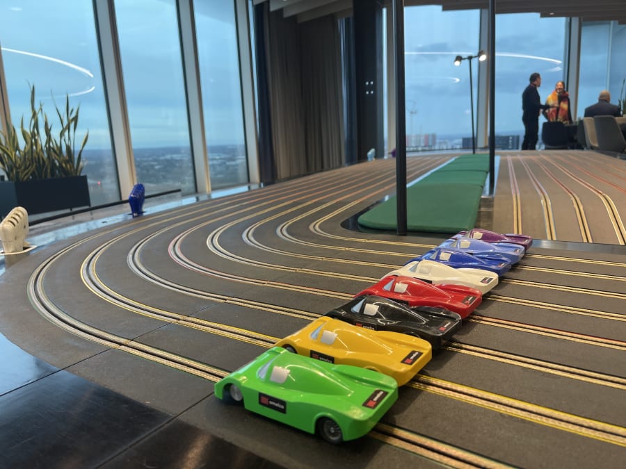 Our Giant 8-lane Scalextric track is an absolute showstopper, perfect for corporate competitions, exhibition stands, and private parties. Experience the thrill of head-to-head racing and make your event unforgettable with this interactive favourite.
