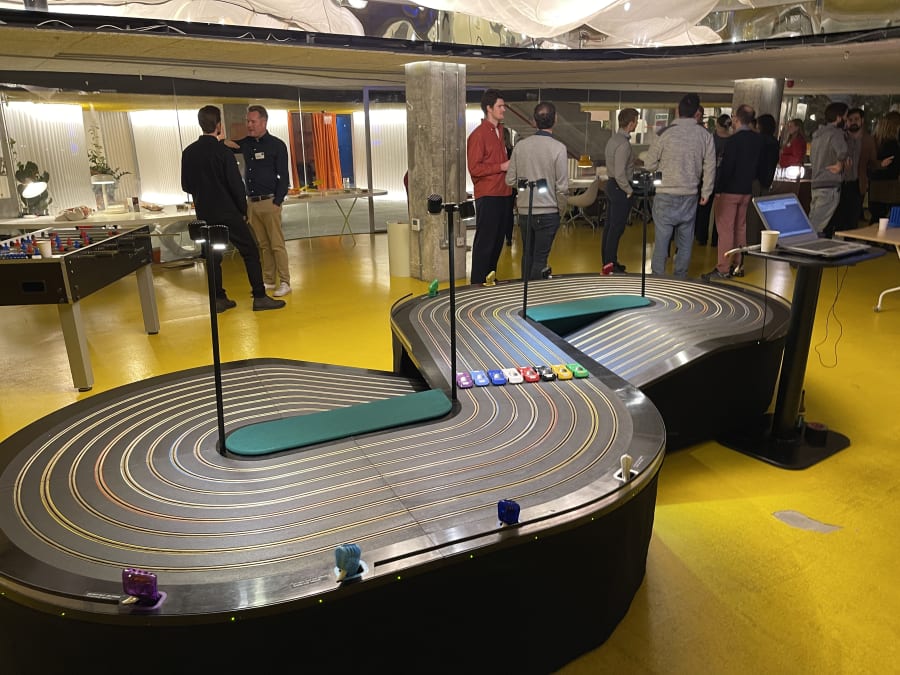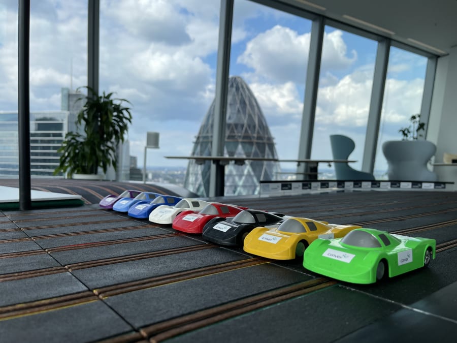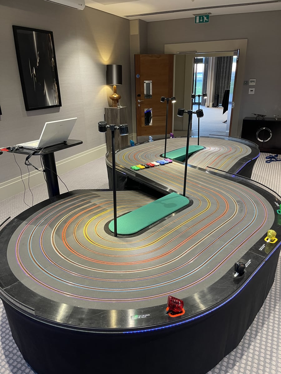 - Giant 8-Lane Scalextric Hire: Make a statement with our impressive eight-lane Scalextric track. This crowd-pleasing centrepiece brings the thrill of slot car racing to your venue, ideal for tournaments, team building, or drawing attention at promotional events.